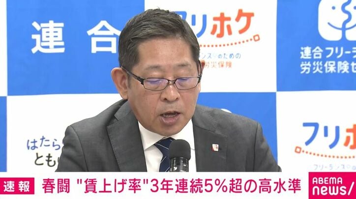 春闘 “賃上げ率”3年連続5%超の高水準 速報 2026/03/23 17:51 拡大する 連合は、今年の春闘の賃上げ率の平均が中間集計で5.26%だったと発表しました。 3年連続で5%を超えています。 連合によりますと、23日午前10時時点での今年の春闘の賃上げ率の平均は5.26%でした。33年ぶりの高水準になったおととしから3年連続で5%を超えました。中小企業の組合でも5%を上回っているということです。 連合は今年の目標として全体としては3年連続の5パーセント以上、中小企業では6パーセント以上、また、パートや契約社員などの組合員については連合として初めての数値目標である「7パーセント」を掲げていました。(ANNニュース) 続きを読む