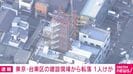 東京・台東区の建設現場から転落 1人けが 速報 2026/03/23 17:51 【映像】現場付近の様子 この記事の写真をみる(2枚) 東京・台東区の建設現場で「9階から人が転落した」と通報がありました。警視庁が詳しい状況を調べています。【映像】現場付近の様子 午後4時ごろ、台東区橋場で「建設現場9階から人が転落した」と119番通報がありました。 警視庁によりますと、建設現場から作業員とみられる人が何らかの原因で転落したということです。 病院に搬送される際に意識はあったということです。警視庁が落下した詳しい状況を調べています。 現場はJR南千住駅からおよそ1.2キロメートル離れた住宅街です。(ANNニュース) この記事の画像一覧 【映像】「レースしたりしていた」ミニバン転落11人死亡 ペルー 【画像】16歳だった元舞妓が飲酒させられている様子(複数カット) 「避妊できない」結婚11年で6人産んだかおりさん(40) この記事の写真をみる(2枚) Twitter