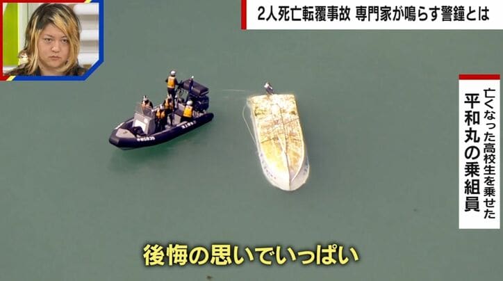 女子高校生ら死亡の2隻「事業登録なし」…専門家が指摘する行政の問題点「組織改革しないと事故は続く」 辺野古転覆事故 ABEMA的ニュースショー千原ジュニア,田中萌 2026/03/24 07:00 拡大する 「安らかにお眠りくださいと、哀悼の意を表したいと思います」(同志社国際高校西田喜久夫校長)。またも繰り返された海の事故。楽しいはずの修学旅行が一転、高校2年生の女子生徒と船長が死亡。14人が怪我という大惨事に。 転覆したのは「不屈」と「平和丸」の2隻の小型船。海上保安部によると、16日、2隻は沖縄県名護市の辺野古沖にある長島を抜け大浦湾を北上し、Uターン。その後、サンゴ礁が広がっている付近へと進んだところで大きな波を受けて「不屈」が転覆。その2分後、別の波を受けて「平和丸」も転覆したという。 続きを読む