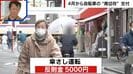「あれだって危ない。傘さしての(運転)。突っ込まれたことがある」(女性)。傘をさしながらの運転は反則金5000円だ。