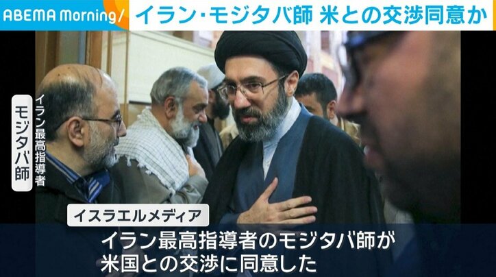 イラン・モジタバ氏 米との交渉同意か 速報 2026/03/25 08:00 拡大する 戦闘の終結に向けてイランの最高指導者がアメリカとの交渉に同意したと報じられました。 イスラエルメディアは24日、情報筋の話として最高指導者のモジタバ師がイランが提示する条件に基づき戦闘を早期終結させるためアメリカとの交渉に同意したと報じました。 この決定をアラグチ外相がトランプ政権のウィトコフ中東担当特使に密かに伝えたということです。 トランプ大統領は先ほど記者団に対し、イラン側の「適切な人物」と話し合っていると述べ、アメリカからはバンス副大統領とルビオ国務長官が関与していると明らかにしました。 続きを読む