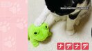 カエルのぬいぐるみをなでなでするネコちゃん。