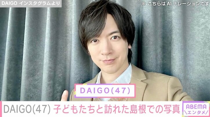 北川景子の夫・DAIGO、家族で島根へ 子どもたちの写真に「めちゃ大きくなりましたね」「ママのミニチュアみたい」などの反響 ABEMAエンタメ北川景子,DAIGO 2026/03/25 18:34 拡大する 俳優・北川景子(39)の夫で歌手のDAIGO(47)が24日、SNSを更新。家族で島根県を訪れたことを明かし、子どもたちの写真に反響が寄せられている。 2016年に北川と結婚し、5歳の長女と2歳の長男、2人の子どもを育てているDAIGO。Instagramでは、北海道のテーマパークを訪れた際の写真や、「妻と娘と息子が写ってる!!!!」とコメントした、収録現場で誕生日をお祝いしてもらった様子など、貴重な家族ショットもたびたび披露してきた。 続きを読む