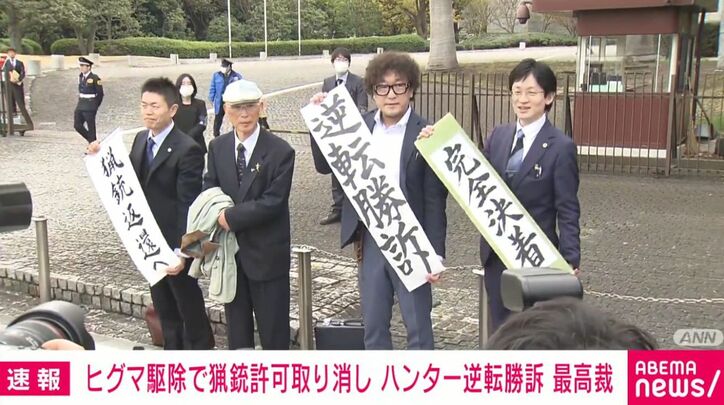 ヒグマ駆除で猟銃許可取り消し ハンター逆転勝訴 最高裁 速報 2026/03/27 17:18 拡大する 猟銃所持の許可を取り消されたのは不当として、北海道の猟友会の男性が起こした裁判で、最高裁は2審判決を取り消し、男性の逆転勝訴の判決を言い渡しました。 北海道猟友会砂川支部長の池上治男さん(77)は、2018年に砂川市からの要請を受けて、クマを駆除したところ周辺の建物に当たる恐れのあった発砲だったとして北海道公安委員会から猟銃所持の許可の取り消し処分を受けました。 処分の取り消しを求めて池上さんは裁判を起こし、1審の札幌地裁では池上さん側が勝訴しましたが、2審の札幌高裁は1審判決を取り消し、逆転敗訴となりました。 続きを読む