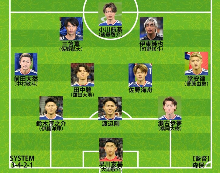 【日本代表|スコットランド戦の予想スタメン】最注目のシャドーは三笘薫と伊東純也?イングランド戦を見据え「11人交代」を積極活用か サッカー日本代表三笘薫,伊東純也 2026/03/28 11:44 拡大する 英国遠征中のサッカー日本代表は、日本時間3月29日午前2時キックオフでスコットランド代表と敵地ハムデン・パークで対戦。この国際親善試合(KIRIN WORLD CHALLENGE 2026)に向けたスタメンを予想する。 4月1日のイングランド戦(ウェンブリー・スタジアム)を含めた今回のシリーズは、今年6〜7月に開催されるFIFAワールドカップの登録メンバー発表前では最後の強化試合で、そのW杯出場国と連戦する貴重な機会。多くの主力を怪我で欠く苦しい状況ではあるが、森保一監督は選手選考&基本コンセプトの確認と積み上げをテーマに掲げる。 続きを読む
