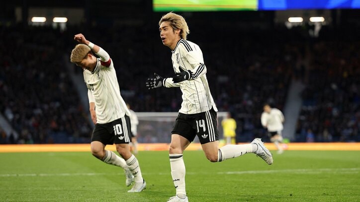 森保ジャパン、伊東純也の劇的ゴールでスコットランド代表に1ー0勝利!主力投入の後半に“超攻撃的”新システム変更が的中 サッカー日本代表三笘薫,伊東純也 2026/03/29 04:13 拡大する 【国際親善試合】スコットランド代表 0-1 日本代表(日本時間3月29日/ハムデン・パーク) サッカー日本代表(FIFAランキング19位)は日本時間3月29日、キリンワールドチャレンジ2026(国際親善試合)でスコットランド代表(同38)と対戦。伊東純也のゴールで勝利している。 4月1日のイングランド戦を含めた今回のシリーズは、今年6〜7月に開催されるFIFAワールドカップの登録メンバー発表前では最後の強化試合で、そのW杯出場国と連戦する貴重な機会。初戦のスコットランド戦で森保一監督は、中2日で開催されるイングランド戦も見据えてややテスト色の強いスタメンを選択した。 続きを読む