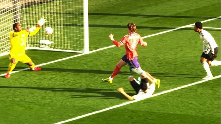 「どんな反射神経しとんねん」鈴木彩艶、値千金の“神セーブ”に衝撃!「凄すぎてドン引き」超至近距離弾を左手ストップ サッカー日本代表鈴木彩艶 2026/03/29 07:16 拡大する 【国際親善試合】スコットランド代表 0-1 日本代表(日本時間3月29日/ハムデン・パーク) 骨折から帰ってきた日本代表の守護神が、圧巻のシュートストップでチームを救った。スコットランド代表戦に先発フル出場したGK鈴木彩艶が、至近距離からの強烈なボレーシュートを左手一本で弾き出すビッグセーブを披露。大きな話題となっている。 日本代表は日本時間3月29日、キリンワールドチャレンジ2026(国際親善試合)でスコットランド代表と敵地ハムデン・パークで対戦。今年6〜7月に開催されるFIFAワールドカップに向けたメンバー最終選考も兼ね、全体的にテスト色の強いスタメンとなった。その中でも、左手複雑骨折が癒えて昨年10月以来の代表復帰となった正GKの鈴木は先発フル出場。計3本の枠内シュートを全て防ぎ、見事にクリーンシートを記録した。 続きを読む