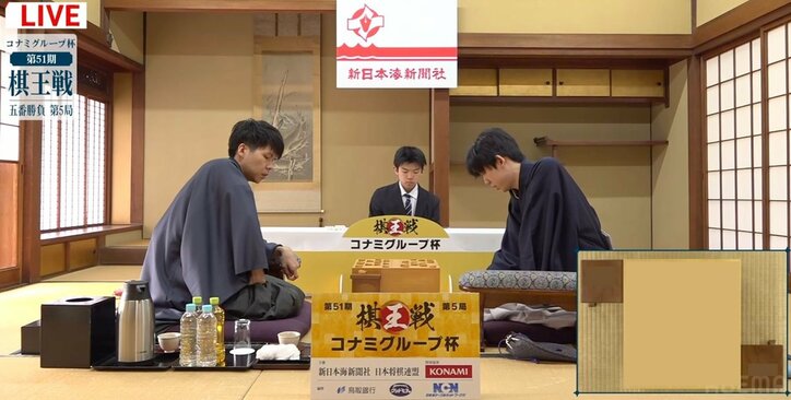 「“フルセットの鬼”になる可能性も」藤井棋王の逆転防衛か、増田八段のタイトル初奪取か!運命の最終局/将棋・棋王戦第5局 将棋藤井聡太 2026/03/29 12:18 拡大する 将棋の第51期棋王戦コナミグループ杯五番勝負第5局が3月29日、鳥取市の「有隣荘」で行われ、藤井聡太棋王(竜王、名人、王位、棋聖、王将、23)と増田康宏八段(28)が現在対局中だ。藤井棋王の逆転防衛か、増田八段のタイトル初奪取か。運命の最終局は、後手番となった増田八段が「一手損角換わり」を選択した。 カド番をしのいでフルセットに繋げた藤井棋王が逆転防衛を果たすのか、増田八段が悲願の初戴冠を決めるのか。鳥取市を舞台に争われている最終局は、振り駒で藤井棋王の先手盤に決定。後手番となった増田八段は、「一手損角換わり」を志向した。 続きを読む