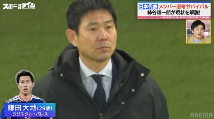 「森保さん本当にどうするんだろう?」日本代表の“層の厚さ”に柿谷曜一朗が悶絶「現メンバーの“底上げ”が楽しみ」 ABEMAスポーツタイム 2026/04/02 07:30 拡大する 3月29日放送の『ABEMAスポーツタイム』で、欧州遠征スコットランド戦に勝利したサッカー日本代表を特集。元Jリーガーの柿谷曜一朗が、W杯への招集の可能性のある選手陣の“層の厚さ”に苦悩の表情を見せる一幕があった。番組ではスコットランド戦の映像を紹介しつつ、柿谷が試合展開や注目選手について解説。そのなかでも前半に出場したシャドーの鈴木唯人選手と佐野航大選手の名を挙げ、「即興のチームのなかで立ち位置も含め、チームが必要とする選手になってきたと思う。推進力、力強さ、やってやるという気持ちがプレーに出ていた」と評価した。 続きを読む