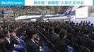 ANAグループでは、飛行機を間近に感じられる迫力ある空港の格納庫に、およそ2800人の新入社員が集まりました。(ANNニュース)