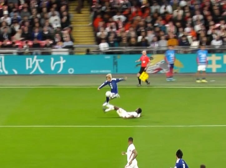 衝撃!伊東純也の“ジャンピング突破”が「忍者だわ」「キャプテン翼すぎる」イングランド逸材の猛タックルを無力化 サッカー日本代表伊東純也 2026/04/01 21:50 拡大する 【国際親善試合】イングランド代表 0-1 日本代表(日本時間4月1日/ウェンブリー・スタジアム) 日本代表のMF伊東純也が、聖地ウェンブリーでまるで漫画のような神業プレーを披露した。ファンからは興奮の声が殺到した。 日本代表は日本時間4月1日、キリンワールドチャレンジ2026(国際親善試合)でイングランド代表と聖地ウェンブリー・スタジアムで対戦。23分にFW三笘薫が決めたゴールが決勝点となり、1-0でサッカーの母国イングランドから歴史的初勝利を収めた。 続きを読む