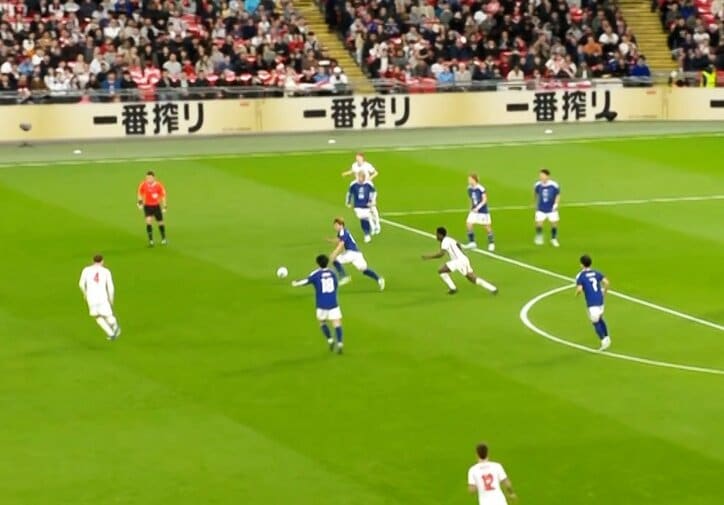 「積んでるエンジンが違う」佐野海舟、4m後方から“爆速ダッシュ”で神回収!「カンテいるわ」イングランド封殺で騒然 サッカー日本代表佐野海舟 2026/04/02 11:45 拡大する 【国際親善試合】イングランド代表 0-1 日本代表(日本時間4月1日/ウェンブリー・スタジアム) 日本代表の中盤に君臨するダイナモが、絶体絶命のピンチを規格外のスピードで救い出した。MF佐野海舟が相手に決定的なパスが渡る直前で“爆速ダッシュ”による神パスカットを披露し、ファンから驚愕の声が殺到している。 サッカー日本代表は日本時間4月1日、キリンワールドチャレンジ2026(国際親善試合)でイングランド代表と聖地ウェンブリー・スタジアムで激突。前半23分に生まれたFW三笘薫の先制ゴールを守り切り、1-0でサッカーの母国から歴史的な初勝利をもぎ取った。 続きを読む