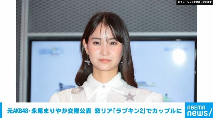 元AKB48・永尾まりやが交際公表 恋リア『ラブキン2』でカップルに 速報,ABEMAエンタメ永尾まりや 2026/04/02 18:18 拡大する 元AKB48で女優の永尾まりやさん(32)が1日、自身のインスタグラムで、プロキックボクサーの白鳥大珠さん(30)との交際を公表しました。 二人はABEMAの恋愛リアリティーショー『ラブパワーキングダム2』に出演していました。 永尾さんは「ABEMA『ラブパワーキングダム2』最終回配信されました!モテるため、No.1を目指して飛び込んだこの番組で、私にとって大切な存在に出会うことができました。たいじゅくん、これからもよろしくね」と番組を通して白鳥さんと交際したことを改めて報告しました。 続きを読む