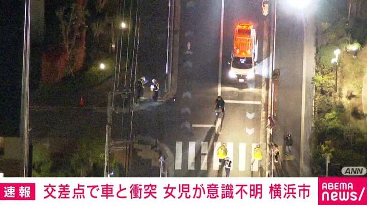 交差点で車と衝突 女児が意識不明 横浜市 速報 2026/04/02 20:13 拡大する 横浜市の交差点で車と歩行者の事故があり、小学生とみられる女の子が意識不明の重体です。 午後5時半ごろ、横浜市戸塚区で「乗用車と歩行者の事故。歩行者は小学生くらいの女の子。呼びかけに応じない」と通行人の女性から110番通報がありました。 警察によりますと、この事故で小学生とみられる女の子が病院に搬送されましたが、意識不明の重体です。 警察は、乗用車を運転していた男を現行犯逮捕し、事故の詳しい状況を調べています。 続きを読む