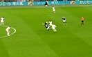 上田がここ数年で磨きをかけたポストプレーで魅せたのが、50分のシーンだ。自陣ペナルティーエリア手前で相手の攻撃を凌ぎ、DF伊藤洋輝がスライディングで前線へボールをクリア。これに反応した上田に対し、イングランドはMFエリオット・アンダーソンとMFコビー・メイヌーの2人が素早く寄せて左右から挟み撃ちにする構えを見せた。