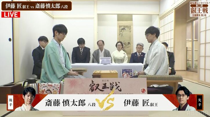 伊藤匠叡王の3連覇か、斎藤慎太郎八段のリベンジか!2期連続同一カードが実現した叡王戦がシンガポールで開幕 将棋伊藤匠,斎藤慎太郎 2026/04/03 11:00 拡大する 将棋の伊藤匠叡王(王座、23)に斎藤慎太郎八段(32)が挑戦する第11期叡王戦五番勝負が4月3日、シンガポールの「シンガポール日本人会」で開幕した。タイトルホルダーとして不動の地位を築いた伊藤叡王が3連覇を決めるのか、再びこの大舞台に戻ってきた斎藤八段がリベンジと叡王奪取を叶えるのか。振り駒の結果、先手は伊藤叡王に決まった。 日本とシンガポールの外交関係樹立60周年記念文化交流事業として開催される叡王戦開幕局。大きな注目を集める春の新シリーズには、2期連続で伊藤叡王と斎藤八段が顔を揃えることとなった。 続きを読む