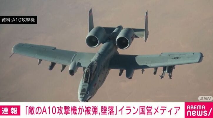 A10攻撃機が墜落か イラン国営メディアパイロットは無事との報道も 速報 2026/04/04 10:12 拡大する アメリカやイスラエルとの衝突が長期化するなかイランの国営メディアは「敵のA10攻撃機が被弾し、墜落した」と報じました。 イランの国営放送は3日夜、南部ホルムズ海峡周辺で、「イランの防空システムが敵のA10攻撃機を標的にした」と報じました。その後、「機体は被弾しペルシャ湾に墜落した」と伝えています。 アメリカのウォール・ストリート・ジャーナルによりますと機体はイラン領内には墜落しておらず、パイロットは脱出したと報じています。 続きを読む