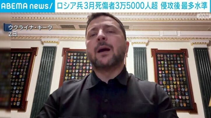 ロシア兵3月死傷3万5千人超 侵攻後最多水準 速報 2026/04/05 11:11 拡大する ウクライナのゼレンスキー大統領は先月に死傷したロシア軍兵士が3万5千人以上となり侵攻開始以来、最も多い水準だったと明らかにしました。 ゼレンスキー大統領は3日、ウクライナ軍が先月行ったドローン攻撃でのロシア兵の死傷者数は3万3千988人、その他の攻撃によるものが1千363人で、合わせて3万5千人以上が死傷したとSNSで明らかにしました。 ゼレンスキー氏は、2022年2月の侵攻開始以降、最も多い水準だと主張しています。 続きを読む