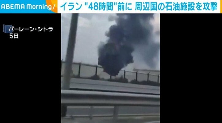 イラン “48時間”前に 周辺国の石油施設を攻撃 速報 2026/04/06 07:57 拡大する アメリカのトランプ大統領がイランに迫った「48時間」の交渉期限を前に、イラン側は周辺国のエネルギー施設への攻撃を強めています。 バーレーンの国営石油会社は5日、精製施設がドローン攻撃を受けたと明らかにしました。 またクウェートの国営石油会社も5日、本社が入る石油省の建物と精製施設が相次いでイランのドローン攻撃を受けたと発表しました。 「火災が発生し、施設に甚大な被害が出た」としていて、今後、石油生産にも大きな影響が出そうです。 続きを読む