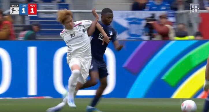 マインツが1―1と同点で迎えた44分、ホッフェンハイムのMFバズーマナ・トゥーレが右サイドからカットインしてくると、そこに立ちはだかったのが佐野だ。背番号6は進行方向できっちりとボールにアタックしながら相手を封じてボール奪取。さらにそのまま攻撃へと転じてドリブルを開始した。ボールを奪われたトゥーレが体をぶつけながら奪い返しにきたところでも競り負けることなくキープすると、相手を振り切って斜め左へと持ち出しさらに加速。グングンとスピードを上げると、DFオザン・カバクのタックルがたまらず足を引っ掛けるようにして倒したことで、ようやく日本代表MFは倒れ込んでストップした。