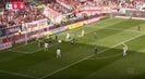 フライブルクがバイエルン陣内でセットプレーのチャンスを獲得すると、MFデリー・シェアハントがアウトスイングのクロスを入れた。これをボックス内でDFフィリップ・ラインハートが、至近距離から強烈なヘディングシュートで合わせたが、守護神ノイアーがビッグセーブで阻止。やや右側に重心が流れながらも、驚異の反射神経で左手を伸ばして枠外へと弾き出した。