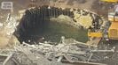 大きな四角い穴が開いていて、穴の中には、捜索を行うダイバーの姿があります。