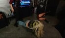 ステファニーによって背後から突き飛ばされたリヴは目の前のロクサーヌと激突。頭部が鈍い音を立てると、二人はその場に倒れ込んだ。それでも気が収まらないステファニーは逃げ場を失ったリヴの長い髪を掴み、引きずり回すと、すぐそばに置かれていた大型テレビのモニターをターゲットに定めた。有無を言わさぬ剛力でリヴの顔面を画面中央へ激突させた。