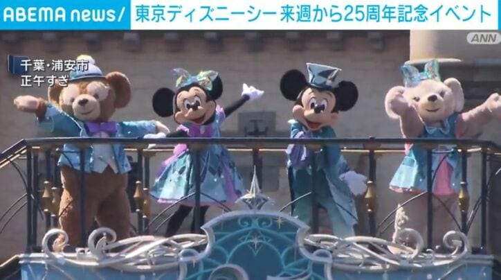 東京ディズニーシー 来週から25周年記念イベント 速報 2026/04/08 16:02 拡大する 今年、25周年を迎える東京ディズニーシーで、来週から始まるアニバーサリーイベントが報道陣に公開されました。 15日から始まる25周年の記念イベント「スパークリング・ジュビリー」では、ディズニーシーを象徴するメディテレーニアンハーバーに、特別な衣装をまとったキャラクター達が船に乗って登場します。 ミッキーマウスの呼びかけで地上にもキャラクターが現れ来園者と一緒に祝う演出も復活します。 パークは9月に迎える25周年のテーマカラーである「青色」を基調に飾られ、記念グッズや飲食メニューが販売されるほか、世界各国のダンスを披露するショーも行われます。 続きを読む