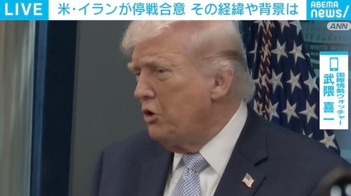 米・イランの停戦合意に専門家「もう一度軍備を整え、戦争に向かうための準備期間では」と懸念 “各国の思惑”を分析 ニュース解説 2026/04/08 22:38 拡大する アメリカとイランの間で電撃的な停戦合意がなされた。トランプ大統領は合意直前まで「交渉に応じなければイランの文明を破壊する」と強い口調で牽制していたが、一転して合意に至った背景について、国際情勢ウォッチャーの武隈喜一氏が解説した。 武隈氏は、トランプ大統領の思惑について「力を通じての平和」を掲げつつも、本音では「軍事力を使いたくない、これ以上泥沼にはしたくないという思いがあったはずだ」と分析する。背景には、米国内の物価高やガソリン価格の高騰に対する国民や党内からの強い不満があり、原油価格のさらなる上昇を避けたかったという事情があるという。 続きを読む