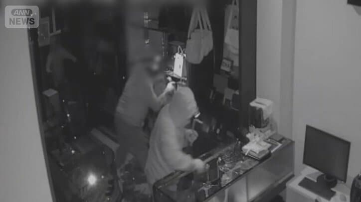 ブランド品買い取り店に複数の男らが侵入。映像には少なくとも3人。バールのようなもので、ショーケースをたたき割り、商品を根こそぎ盗んでいきます。