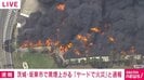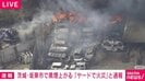 茨城県坂東市にある資材置き場の近くで火事があり、黒煙が激しく上がっています。