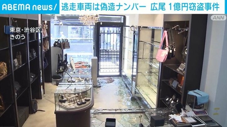 東京・広尾のブランド品買い取り販売店で、高級バッグなど1億2000万円以上が盗まれた事件で、逃走に使われた車のナンバープレートが偽造されたものだったことがわかりました。