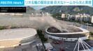 ブラジル・リオデジャネイロで巨大なドームの屋根を炎が覆い、黒煙が立ち上っている。