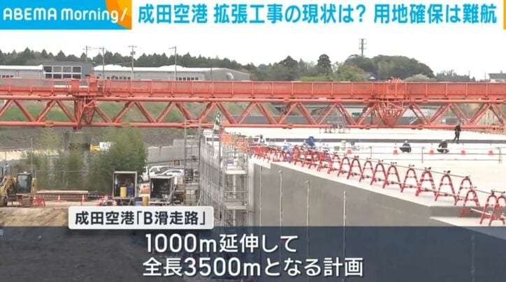 成田空港 拡張工事の現状は? 用地確保は難航 速報 2026/04/10 10:15 拡大する 成田空港の新しい滑走路の建設は用地の確保が難航し、およそ1割は取得できていませんが、B滑走路の延伸とともに周辺の工事が進められています。 成田空港のB滑走路は機能強化のため、現在の2500メートルから1000メートル延伸して、全長3500メートルとなる計画です。 一方新設されるC滑走路は周辺で地盤改良などの工事が進められていますが、必要な用地のうち、1割ほどが取得できていません。 成田空港会社はきょう国や千葉県、周辺自治体との会合を開き、土地の強制収用も検討していることを報告するとみられています。(ANNニュース) 続きを読む