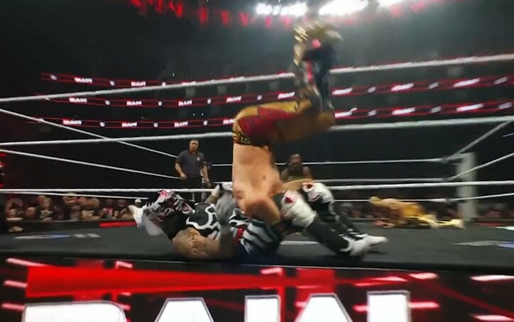 「禁止技にしろ!」米マットで危険すぎる“一撃”が波紋「あそこでやる技じゃない」味方ですら“ドン引き”の表情 WWE 2026/04/10 10:27 拡大する 【WWE】RAW(4月6日・日本時間7日/テキサス・ヒューストン) 米マットのマスクマン対決で、危険すぎる“一撃”。首からリングの硬いところにグサリ突き刺さる衝撃光景に「あかん」「禁止技にしろ!」「あそこでやる技じゃない」などとファン騒然となる一幕があった。とりわけ危険すぎる光景に味方ですら驚愕、心配の“ドン引き”リアクションを浮かべた。 IC王者ペンタと、レッスルマニアのICラダー戦で激突するはずのドラゴン・リー、ジェヴォン・エヴァンスによる臨時トリオが結成され、ロス・アメリカノスと対戦。敵同士が肩を並べるねじれた構図の中、フィニッシュ直前にペンタが見せた“やりすぎ”の一撃が、この試合のすべてをかっさらった。 続きを読む