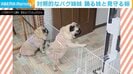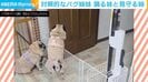ママの姿が見えなくなると、そわそわし始める2匹のパグ。おすわりしているのは、お姉ちゃんのあずきちゃん(5歳)。そして、まるで踊るように動いているのが、もなかちゃん(1歳)だ。