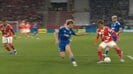 序盤から優位に試合を進めたマインツは11分、ボールを回収した佐野が、川﨑とのワンツーでそのまま一気に持ち上がり、右足で豪快なミドルシュートを叩き込んだ。19分にはDFシュテファン・ポッシュのゴールも生まれ、2点をリードする。