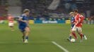 ここで佐野は時間を使うために、ボックス内に入り込んだところでスピードを緩める。DFゲラ・ドゥエ、MFサミル・エル・ムラベに前方を塞がれ、後ろからはプレスバックしてきたエンシソに囲まれる。佐野はターンしながら逃げようとするが、ここでボールコントロールを誤り後ろにこぼしてしまった。