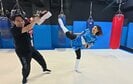 ゲーム画面からそのまま飛び出してきたかのような、驚きの再現度。K-1の女子ファイターが、人気格闘ゲームのキャラクター・春麗(チュンリー)のトレードマークである青い衣装に身を包み、真上に突き刺すようなハイキックを披露した。