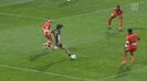 スタッド・ランスに所属する日本代表MFの中村敬斗が、得意のフィニッシュパターンを披露。シュートに持ち込む際の一連の動作で、さすがのテクニックを見せた。