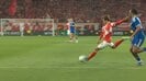 10分、左サイドの低い位置でボールを受けた佐野は、迷いなくゴールへ向かってドリブルを開始。マークについた相手DFをスピードで剥がしながら中央へと切り込むと、ペナルティーエリア手前から右足を一閃した。鋭い弾道のシュートは右ポストの内側を直撃し、そのまま吸い込まれるようにゴールへと突き刺さった。