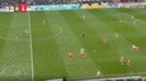 試合は序盤からバイエルンが主導権を握りながら試合を進め、1点リードで迎えた32分に伊藤が守備で魅せた。バイエルンが右サイドから攻めていくも、藤田にボールを奪われて攻守が入れ替わる。するとDFラース・リツカが前線にロングボールを蹴り込み、密集を突破しようとした。