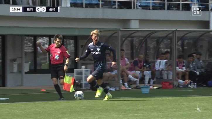 「副審のファウルやん」「ルールにない」まさかの珍事にスタジアム騒然「ついてないな」ライン際で審判にぶつかり転倒→ボールロストで選手に同情の声 Jリーグアビスパ福岡,V・ファーレン長崎 2026/04/12 11:58 拡大する 【明治安田J1百年構想リーグ】アビスパ福岡 1-0 V・ファーレン長崎(4月11日/ベスト電器スタジアム) ピッチ上の主審ではなく、タッチライン外の“副審”と接触して転倒する珍事が起きると、不運に見舞われたアビスパ福岡のFW碓井聖生への同情の声が寄せられている。 4月11日に明治安田J1百年構想リーグ第10節が行われ、福岡はホームでV・ファーレン長崎と対戦。その試合序盤に“世にも珍しい”光景が見られた。 続きを読む