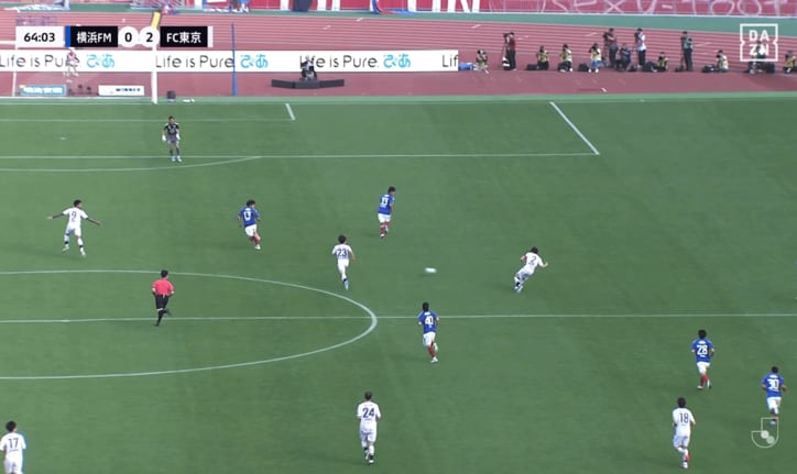 「森保ジャパンに呼びませんか?」32歳DFに“4年ぶり日本代表復帰”待望論!室屋成の“奪取→40m独走→アシスト”に騒然「完璧すぎ」 JリーグFC東京,横浜F・マリノス 2026/04/12 12:11 拡大する 【明治安田J1百年構想リーグ】横浜F・マリノス 1-3 FC東京(4月11日/日産スタジアム) まさに1人3役の活躍だった。FC東京のDF室屋成がDFとしてボール奪取から、ウイングのようなドリブル突破、さらにはトップ下ばりのスルーパスでゴールをお膳立てした一連のプレーにファンも歓喜し、日本代表への待望論も浮上している。 4月11日の明治安田J1百年構想リーグ第10節で、FC東京はアウェーで横浜F・マリノスと対戦。右SBで先発した室屋が圧巻のパフォーマンスを見せたのが、1-0でリードして迎えた64分だ。 続きを読む