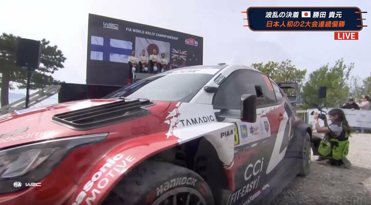 12日、WRC(世界ラリー選手権)「ラリー・クロアチア」の最終日デイ3が行われ、TOYOTA GAZOO Racing World Rally Teamの勝田貴元(かつた・たかもと)が総合優勝。前戦サファリ・ラリー・ケニアで日本人として34年ぶりとなる歴史的勝利を挙げた勝田は、今大会でもその勢いを維持して2連勝。この結果、日本人ドライバーとして史上初となるWRCドライバーズランキング首位(ポイントリーダー)に躍り出る、前人未到の快挙を成し遂げた。