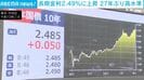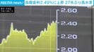 長期金利2.49%に上昇 27年ぶり高水準 速報 2026/04/13 15:53 【映像】長期金利が27年ぶり高水準、イラン情勢で2.49% この記事の写真をみる(2枚) イラン情勢の緊迫化を受けて、長期金利がおよそ27年ぶりの高水準となる2.49%まで上昇しました。【映像】長期金利が27年ぶり高水準、イラン情勢で2.49% イラン情勢の先行きの不透明感や原油高による物価高への懸念から、国内の債券市場では国債を売る動きが強まっています。 長期金利の指標となる10年物国債の利回りは一時2.49%まで上昇しました。これは1999年2月以来、およそ27年ぶりの高い水準です。 長期金利の上昇は、住宅ローンの固定金利や企業の借り入れコストなどに影響を与えます。(ANNニュース) この記事の画像一覧 【映像】時価750万円で売られる超高額ポケモンカード 【画像】「なんで私?」イーロンに見つかりバズった佐保里さん 借金1000万円肩代わり “ホス狂い”の娘を持つミドリさん この記事の写真をみる(2枚) Twitter