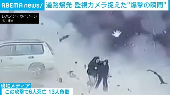 監視カメラが捉えた空爆の瞬間 歩行者の目の前で道路が爆発 6人死亡13人負傷 レバノン わたしとニュース 2026/04/14 08:00 拡大する レバノン中部、カイフーンの映像で監視カメラがイスラエルの空爆の瞬間を捉えていた。 映像には、歩行者2人が道を奥へ進んでいくと、道路が爆発する様子が映っている。歩行者は瓦礫が飛び交う中、走って逃げていく。 現地メディアによると、この爆発で6人が死亡、13人が負傷した。 イスラエルはこの日、レバノンに対し、これまでで最大規模の攻撃を実施していて、数百人が死亡しているということである。(『ABEMA NEWS』より) 続きを読む