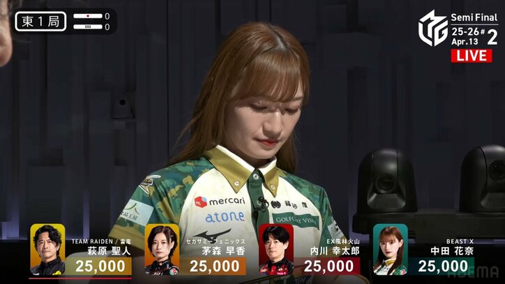 自信がビジュにも好影響!元アイドル雀士・中田花奈、戦いに臨む前の一瞬に目を奪われるファンたち「かわいさレベチ」「勝負への表情の切り替えいいな」/麻雀・Mリーグ Mリーグ 2026/04/14 12:00 拡大する 「ZOZOTOWN Mリーグ2025-26」セミファイナルシリーズ。4月13日の第2試合、BEAST Xの中田花奈(連盟)が、今シーズンの充実ぶりを象徴するような、凛とした美しさとともに登場した。 今期の中田は、まさに「飛躍」の一年だ。レギュラーシーズンでは個人8位(+228.4ポイント)という堂々たる成績を残し、チーム創設3年目での初のセミファイナル進出に大きく貢献。さらにセミファイナル初戦でも見事にトップを獲得し、チームを首位へと押し上げる原動力となっている。 続きを読む