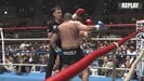 前回イストラテ戦のレフェリーを務めたゲスト解説の角田信朗が「反則の多い選手と聞いてたので”プロだからアグレッシブな試合はいいけれど、クリーンにやった方が人気でるよ”」と試合前にアドバイスした秘話を披露。その試合では角田の一言もあり模範的完勝だったが、今日は大人しく「ちゃんと試合ができるか」に注目が集まった。