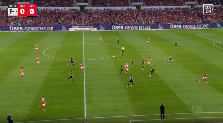 場内騒然! 佐野海舟、絶妙すぎる“30mロングフィード”炸裂「素晴らしい」「めっちゃ見えてる」高精度“ダイレクトワンタッチパス”にファン大興奮 ブンデスリーガ 2026/04/14 11:45 拡大する 【ブンデスリーガ】マインツ 0-1 フライブルク(日本時間4月13日/メーヴァ・アレーナ)マインツに所属する日本代表MF佐野海舟が、高いキック精度を披露した。ダイレクトで通した30メートルのパスに称賛の声が上がっている。マインツは日本時間4月13日、ブンデスリーガ第29節でフライブルクと対戦。佐野はアンカーとして29試合連続出場となった。この日も球際の強さで守備を引き締めた。そんな佐野が攻撃で違いを見せたのが33分だった。佐野と同じくスタメンで出場した川﨑颯太がクリアしたところからマインツの攻撃がスタート。FWシェラルド・ベッカー、FWフィリップ・ティーツを経由して、ハーフウェイライン付近の佐野にボールが戻ってきた。すると佐野はこのボールを受ける前に前方を確認すると、ダイレクトで右前方に約30メートルのフィードを送った。 続きを読む